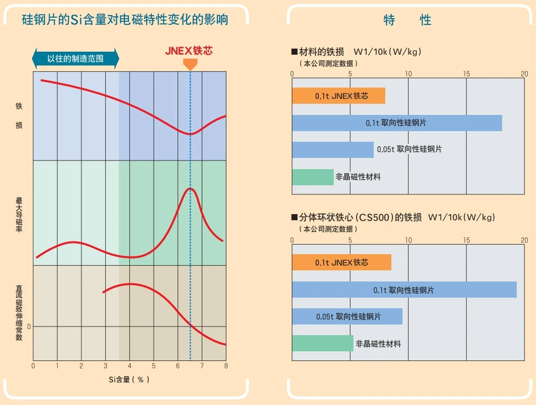JNHF-Coreでは、JNEX-Coreに採用されているシリコン処理技術(CVDプロセス)をさらに進化させ、高周波領域でのコア損失をさらに低減しました。